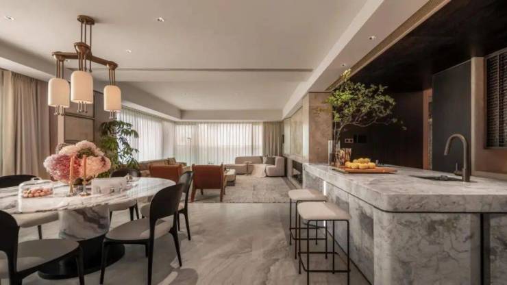 约165㎡户型超越行业常规,提供了 空间、皮肤、功能、艺术化四大定制系统