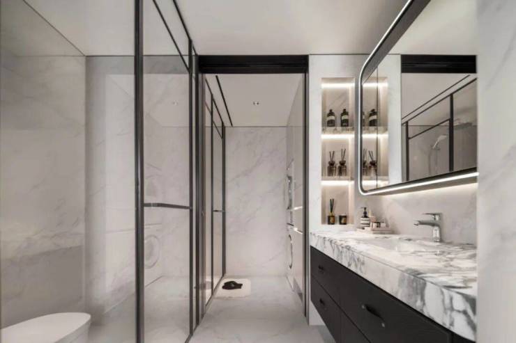打造独特的四分离系统, 实现独立洗漱台、卫生间、淋浴间、洗衣区互不打扰,将酒店化体验引入住宅。