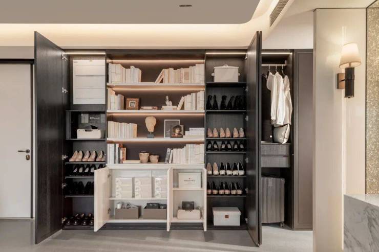 功能定制!项目在硬装阶段就为业主在大多数情况下要的功能进行硬件预埋。如提供从整体收纳到嵌入化妆台,mini bar的多元方案。