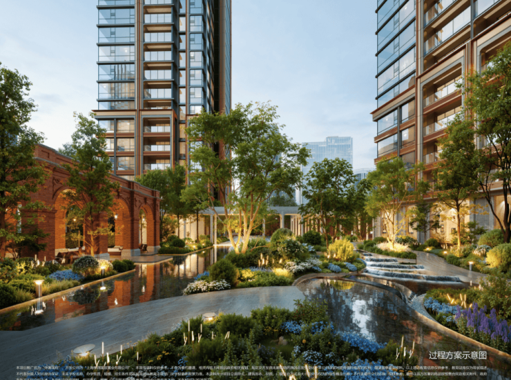 有承载海派记忆的红砖艺术长廊,让行走成为与历史的对话;仪式感十足的迎宾树阵,让归家如穿自然仪仗;还有文化景墙、宠物友好花园、全龄疗愈花园等场景。这些设计并非孤立景观,而是融合“漫步、社交、休闲”功能,最终呈现“可停留、可互动、可欣赏”的滨水美学街区。