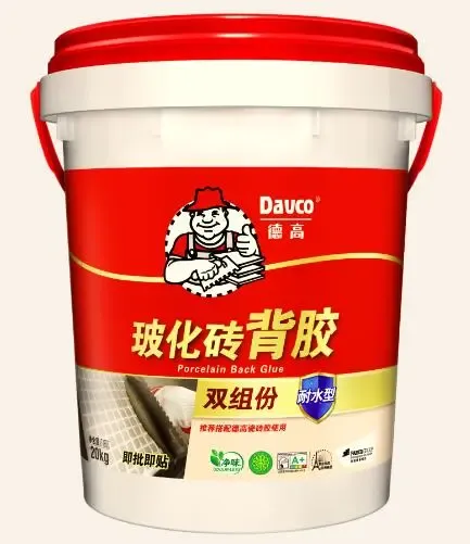 1、德高玻化砖背胶,是双组份的砖背界面剂。粉料+水剂按配比拌和均匀,灰刀薄涂到砖背,就可以用瓷砖胶直接贴砖。